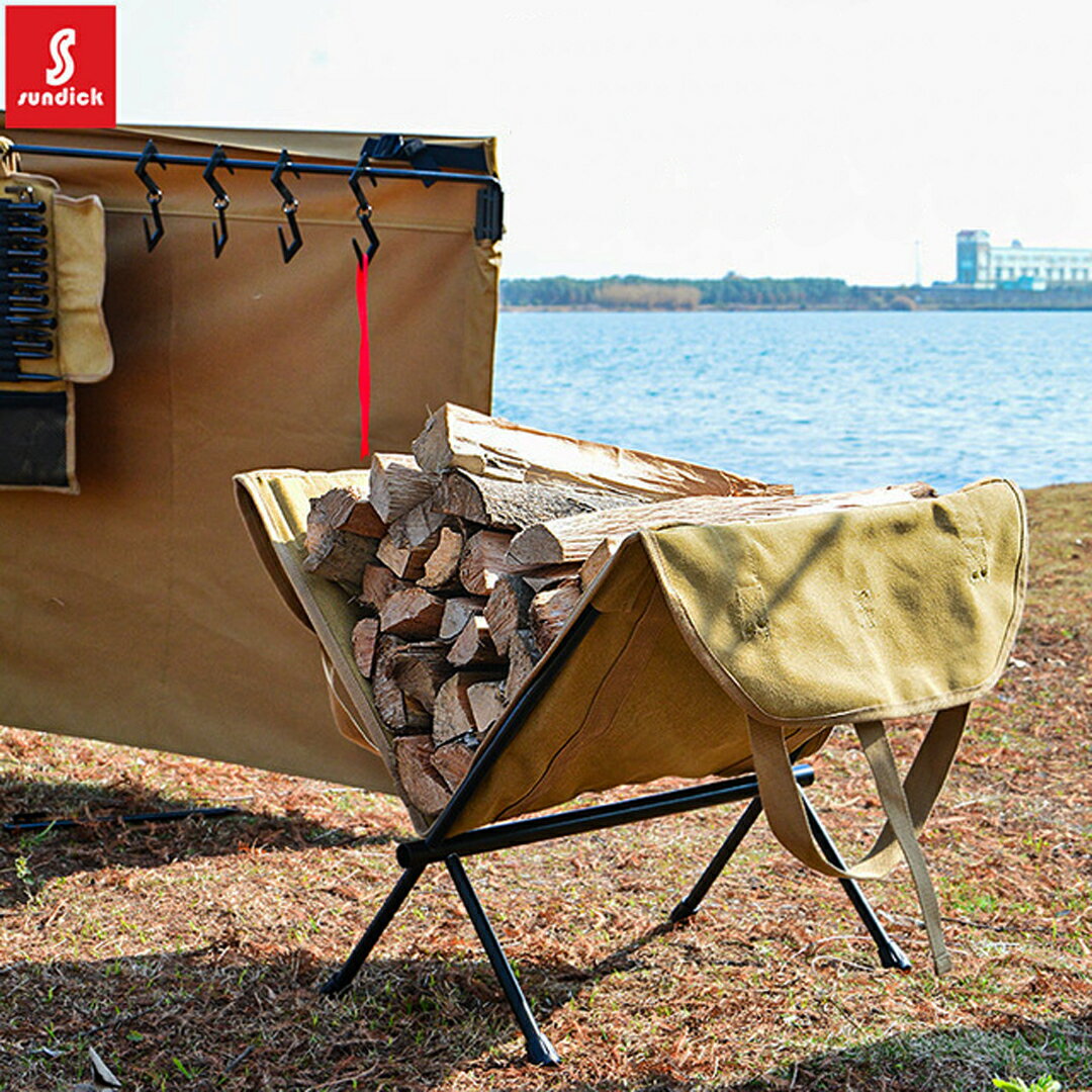 薪スタンドとは、焚き火で使う薪を保管するためのラックのようなものです。バラバラになったり、置き場所に困ってしまう薪を、最適な状態で保管してくれる優れものです。