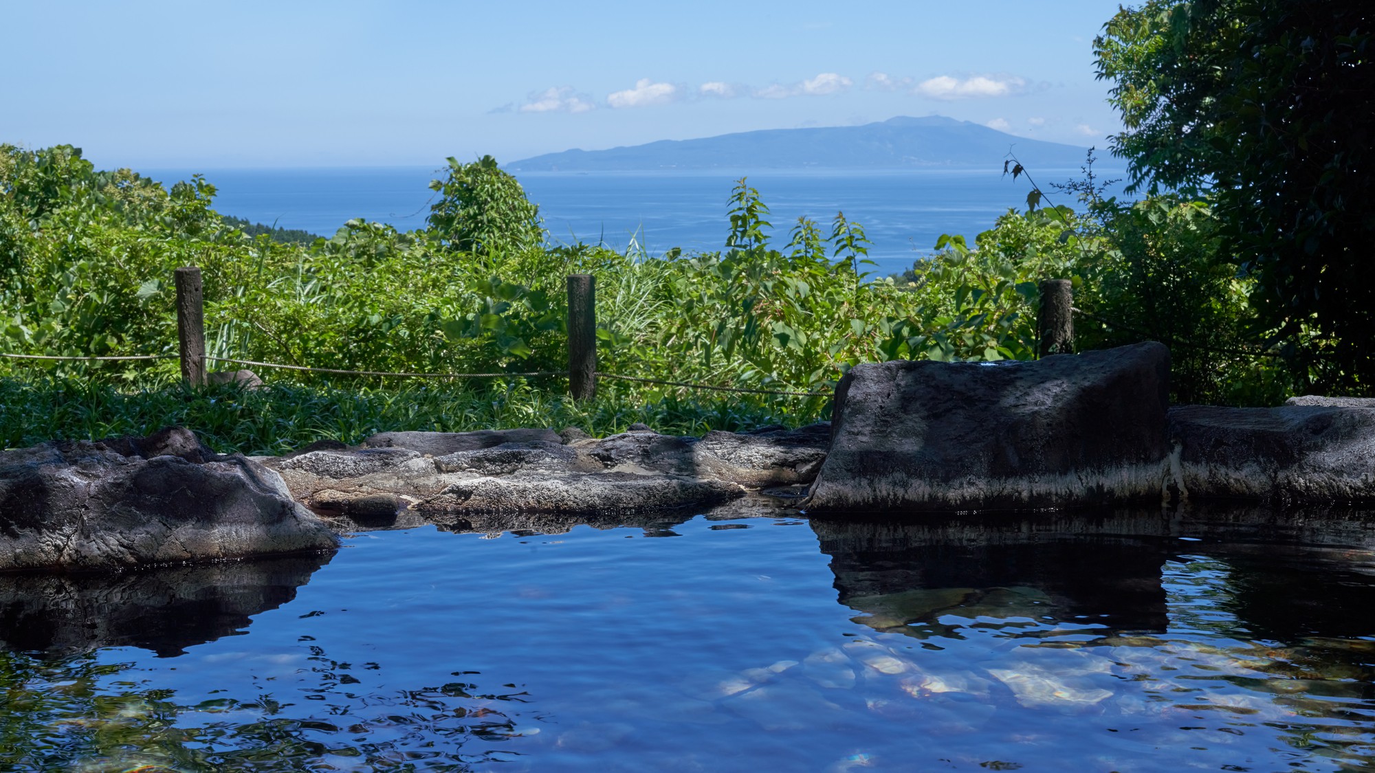 こちらは源泉から引いた温泉が岩にあふれる露天風呂。ゆったりと湯につかりながら、すがすがしいリゾートの空気と、眼下に広がる相模灘の景観が楽しめます。